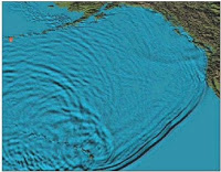 Цунами, как и любая волна, может интерферировать. Если волна пришла в какое-то место сразу по нескольким путям (за счет преломления и отражения), то она накладывается сама на себя. В результате локально может наблюдаться как очень слабый, так и очень сильный всплеск. "Узор" из больших всплесков на глобусе из-за интерференции как правильно очень сложный и сильно зависит от профиля океанического дна (см. картинку, взятую из статьи Tsunami Scattering and Earthquake Faults in the Deep Pacific Ocean; ссылку подсказал Дмитрий Чубаров). Поскольку волна сильнее отражается от резких перепадов глубин, то даже относительне небольшие (высотой несколько сот метров), но крутые подводные горы или трещины, могут повлиять на картину интерференции и дальнейшее распространение волн. Это наверно самая главная трудность в надежном предсказании времени прихода и высоты волны в тот или иной пункт. Профиль океанического дна известен всё еще довольно плохо. В принципе в некоторых районах океана специальные суда всё промеряли довольно хорошо, но весь океан они пока не покрыли. Оценивается, что для покрытия всего океана нужно время 100-200 корабле-лет и вложения порядка 1 млрд. долларов. Однако есть и другой выход — спутниковые измерения из космоса. Это вообще довольно нетривиальная вещь. Всё основано на гравитации: подземные горы слегка притягивают к себе воду, из-за чего непосредственно над горой на поверхности океана будет небольшое вспучивание, высотой порядка сантиметров. Это вспучивание океана надо заметить со спутников (а точнее, измерить отклонение от вертикали), причем для этого приходится вычитать намного более сильные эффекты от волн.