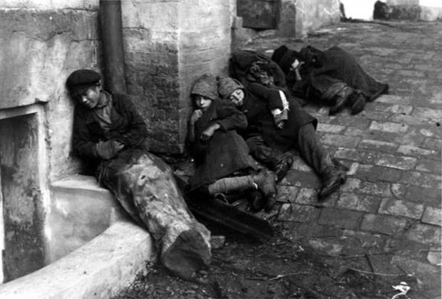 Спящие на улице беспризорники. 1920 год