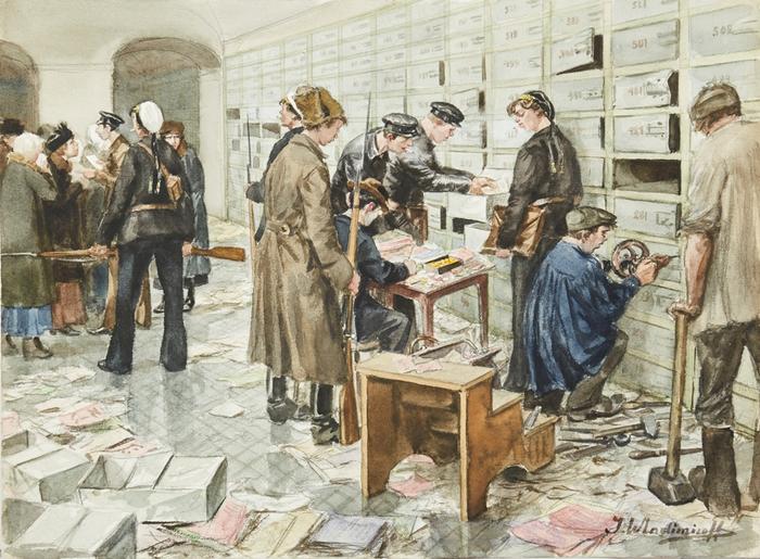 07. Тоже грабеж — на сей раз банковских ячеек, под заумным названием «изъятие награбленного добра». То, что в этих ячейках хранили свои вклады и ценности обычные горожане — никого не интересовало. Имеешь что-то большее, чем драные лапти? Значит враг.