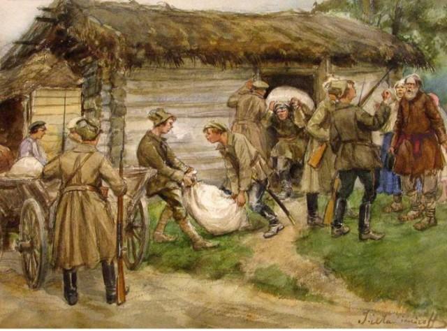 15. Впрочем, награбленному «добру» крестьяне радовались недолго — вскоре к ним в дома приехали отряды продразверстки, которые выгребали из амбаров все запасы зерна, обрекая людей на голод.